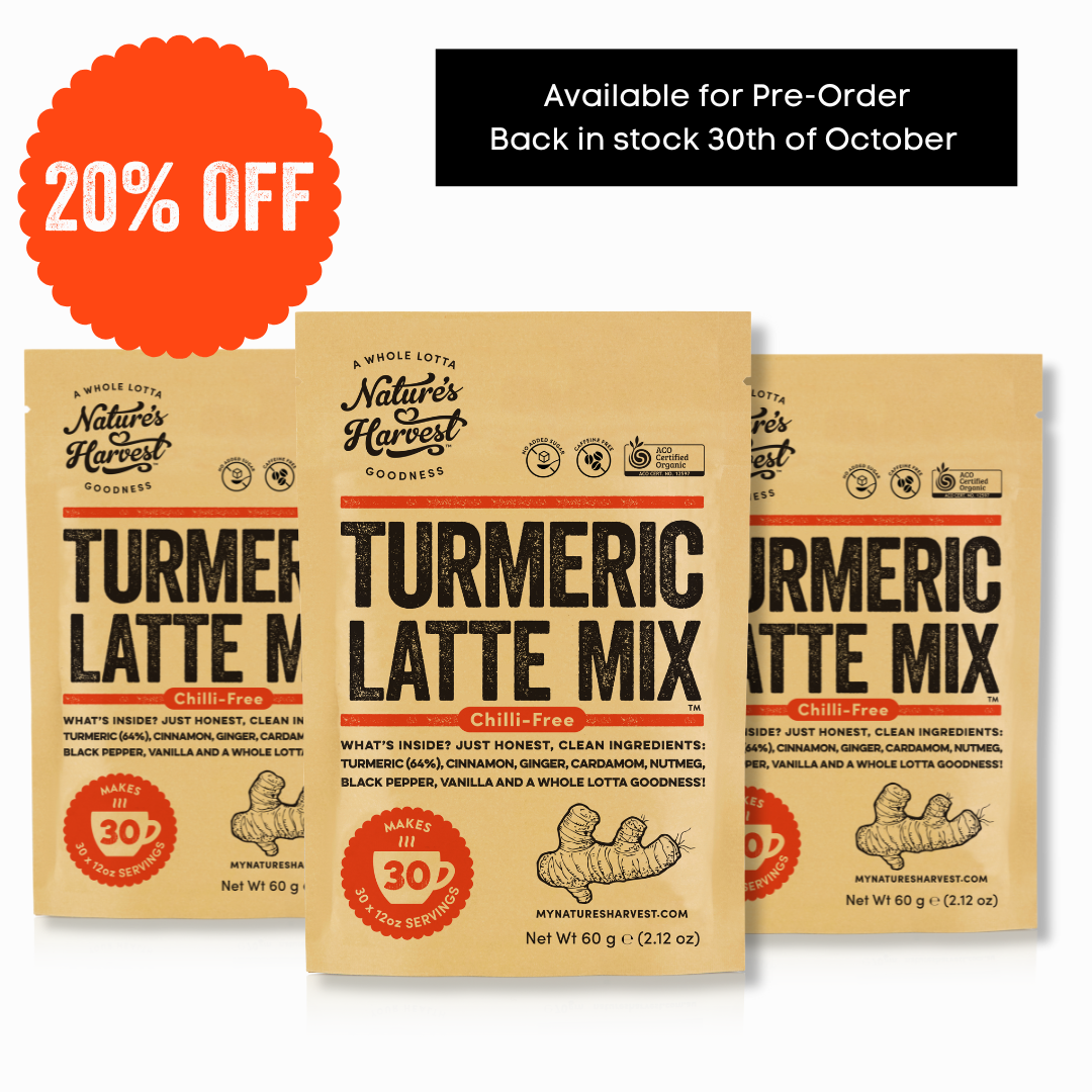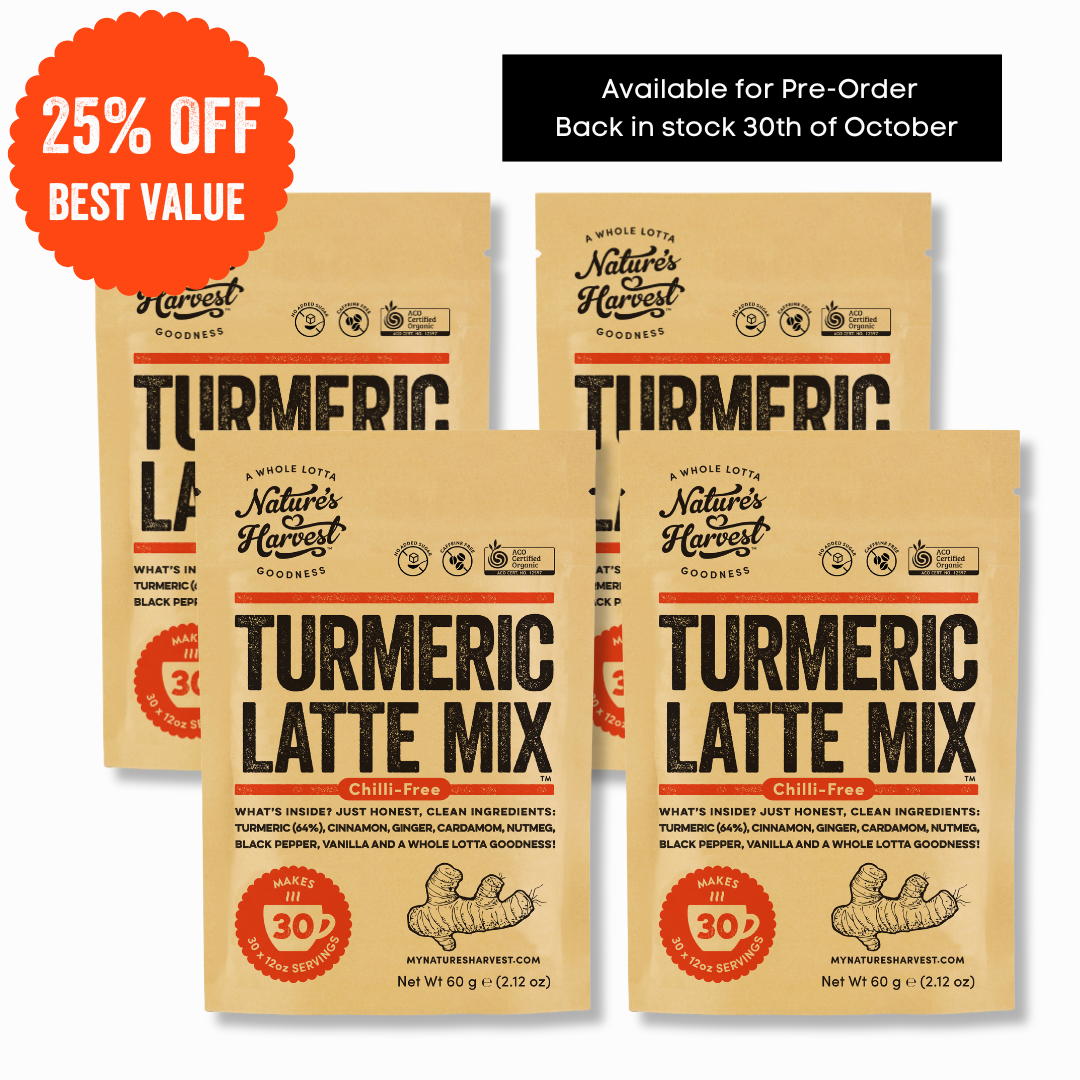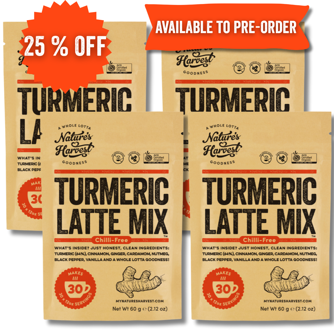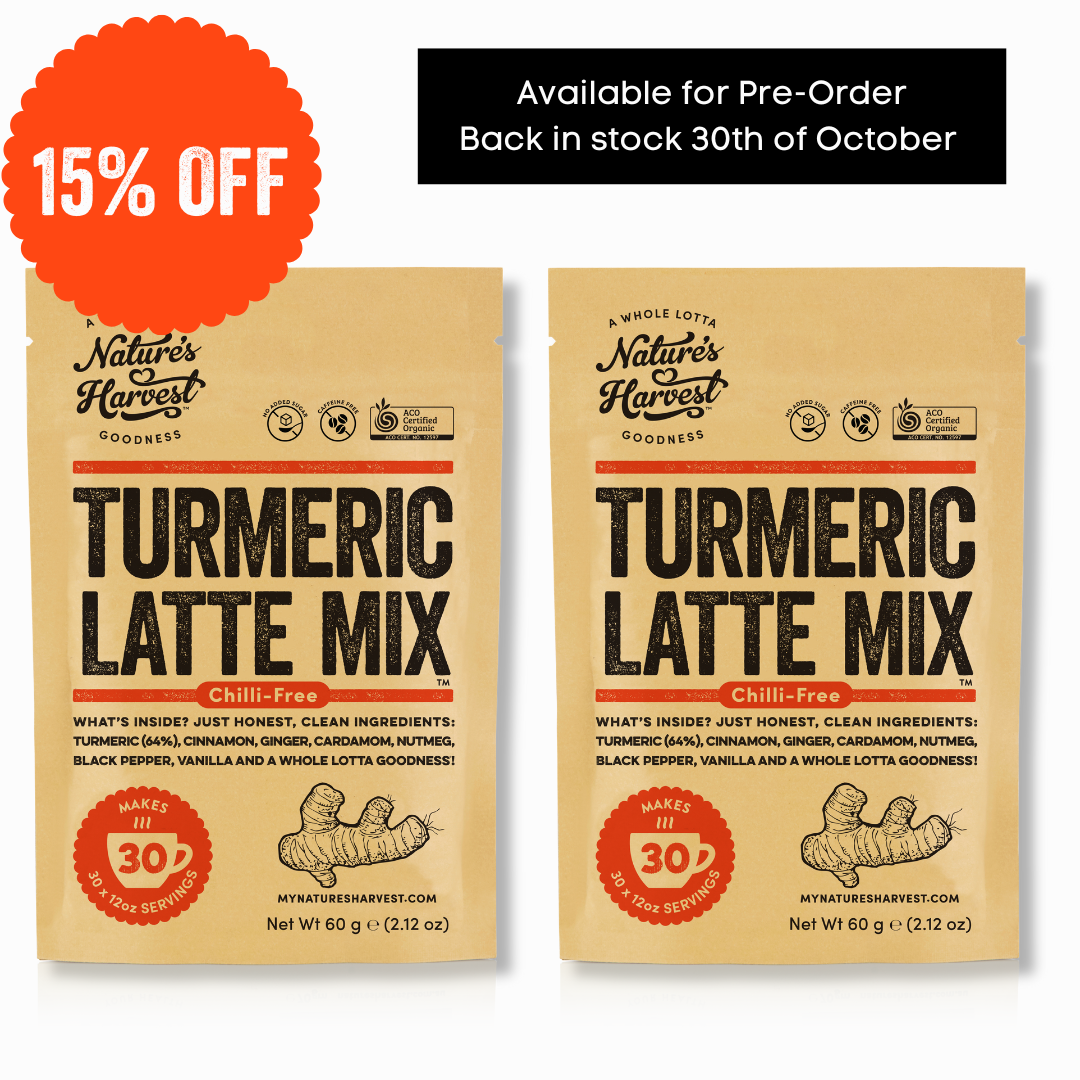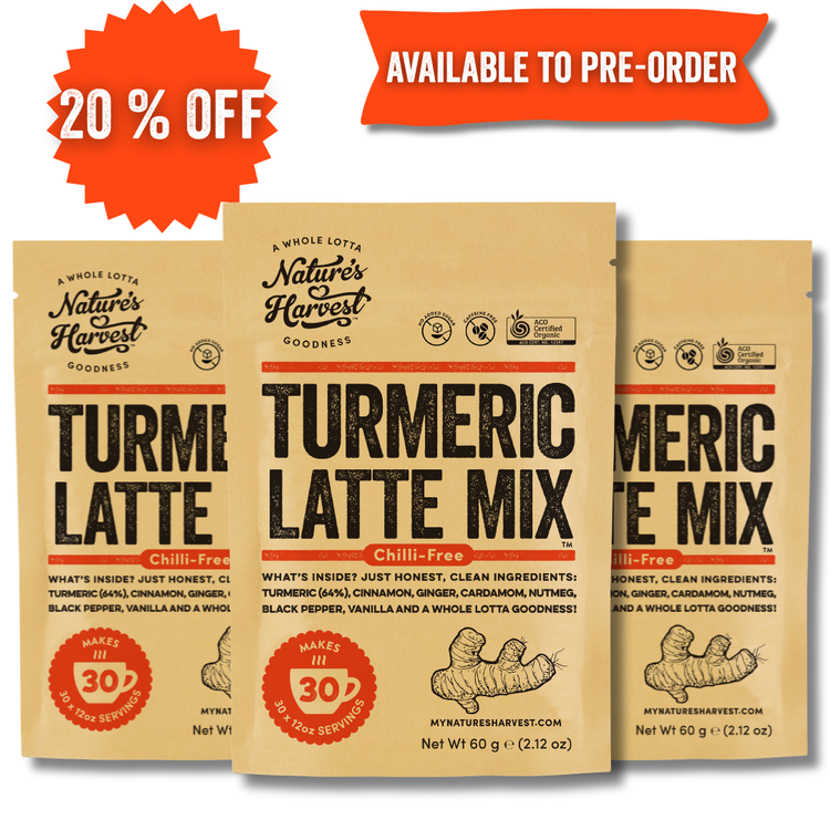 Although the original blend is very popular with it's spice kick, we've created our new mellow Turmeric Latte Mix with the same benefits and added nutmeg.